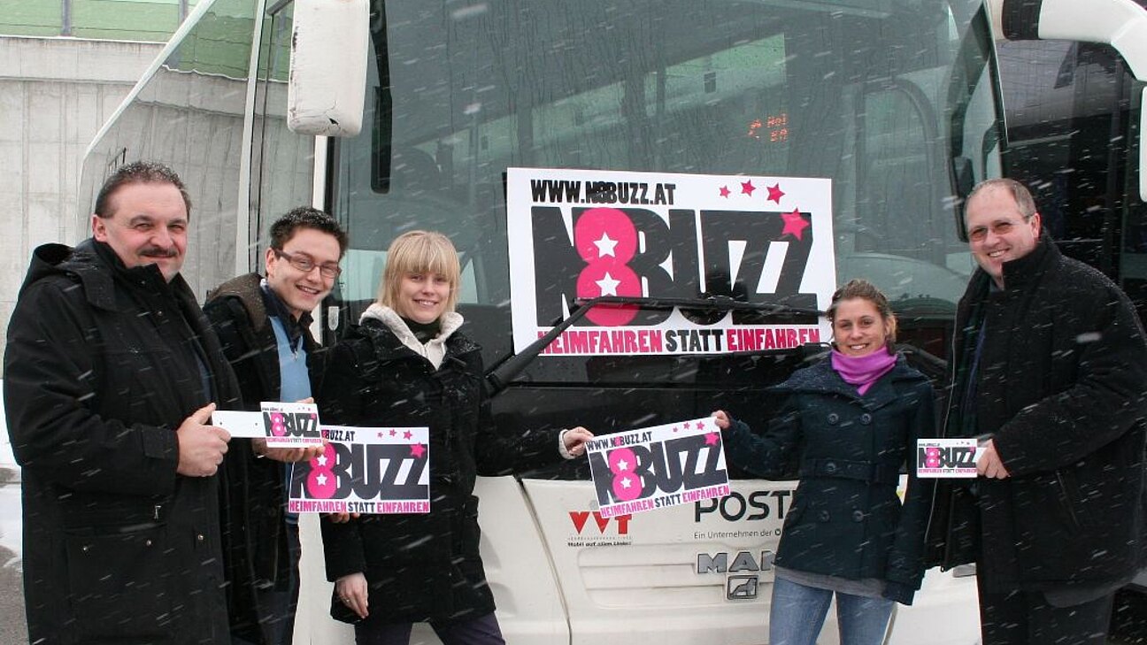 Um vorab rasch Modelle zu finden und Fakten zu erheben, besuchte Alfred Pohl die Aktion „N8BUZZ – Heimfahren statt Einfahren“ (siehe auch www.N8buzz.at). Der N8BUZZ bringt sichere, günstige und bequeme Mobilität für junge Niederösterreicherinnen und Niederösterreicher beim nächtlichen Fortgehen am Wochenende.