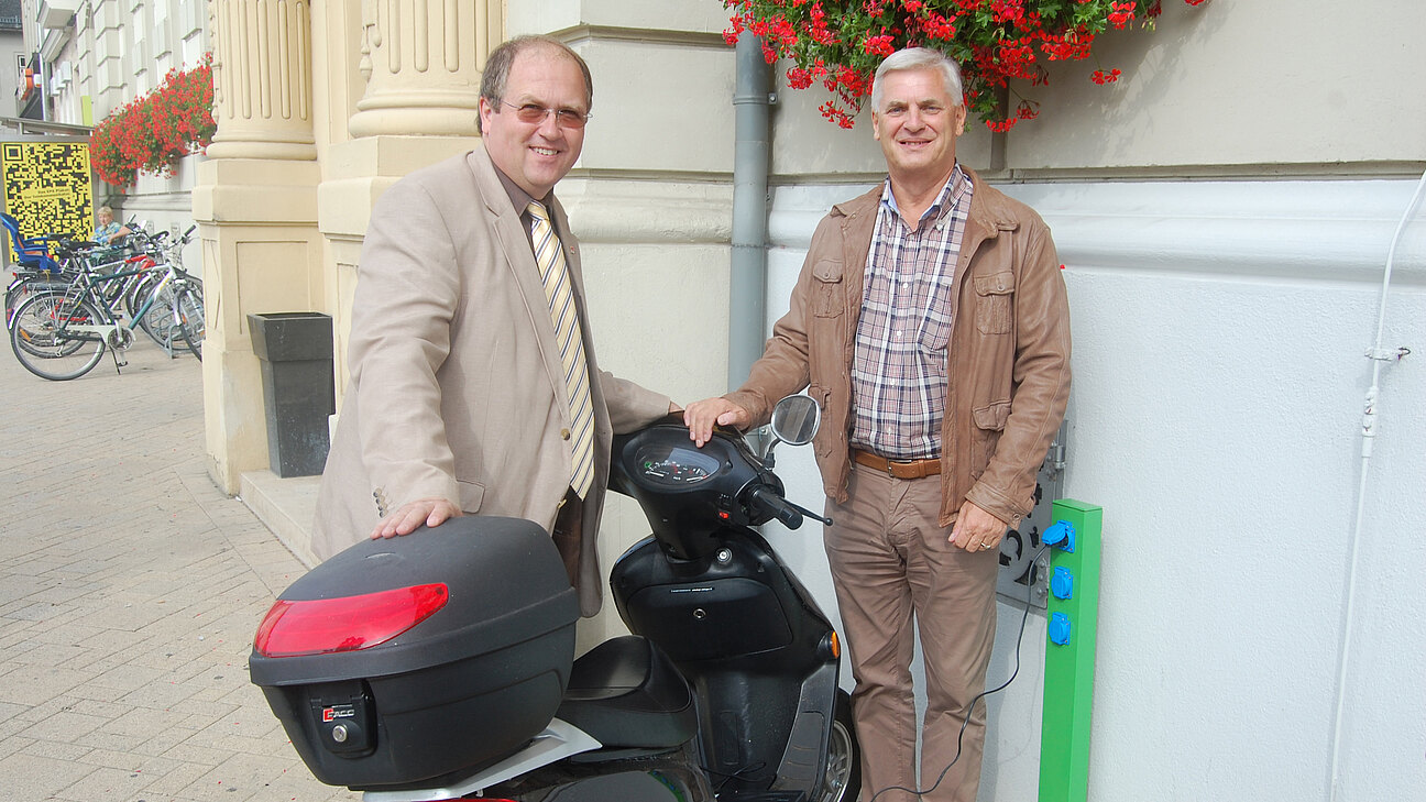 Nicht Flüssigtreibstoff aus einer Zapfsäule, sondern Strom aus der Steckdose! Eine Vorstellung, die auch heute für viele noch mehr Vision als Realität ist. Nicht so in Mistelbach, wo Bürgermeister Dr. Alfred Pohl am Montag, dem 13. September, die erste Ladestation für einspurige Elektrofahrzeuge, direkt neben dem Eingang zur Bezirkshauptmannschaft, eröffnete.